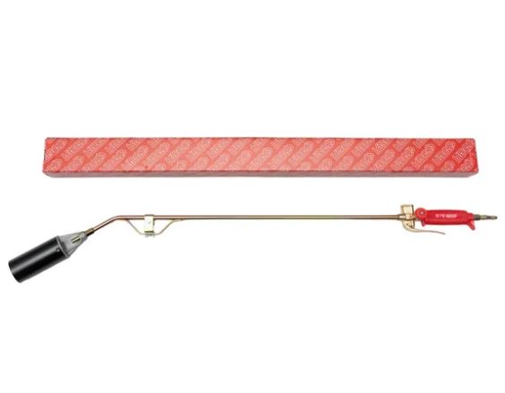 Газовоздушная кровельная горелка рычажная KRASS ГВ-111-Р 2117536 предназначена для нагрева изделий и заготовок из черных и цветных металлов и их пайки, оплавления битумных рулонных материалов, сушки литейных форм, обжига старой краски, ремонта кабельных линий и др. работ. Изогнутая форма наконечника позволяет применять горелку для работы в труднодоступных местах.