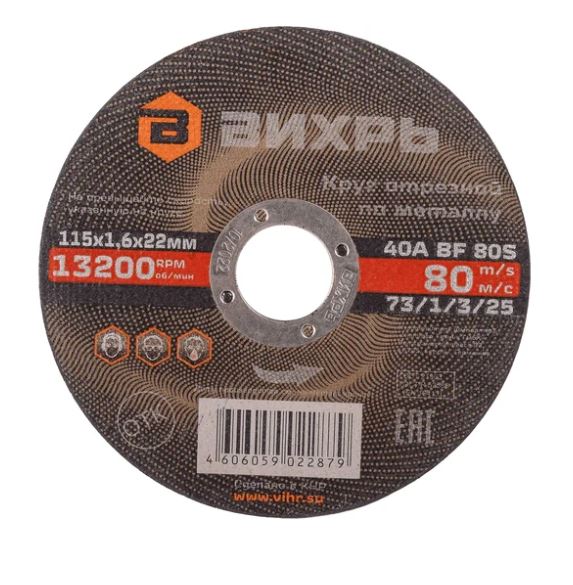 Круг отрезной Вихрь 115х1,6х22 мм используется в комплекте с отрезными пилами и подобными инструментами. Предназначаются для высокопроизводительной резки металлов разного вида. Круг является универсальным для широкого спектра задач, связанных с резкой металлов.