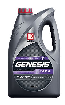 LUKOIL GENESIS UNIVERSAL 5W-30 – моторное масло на основе синтетических технологий для бензиновых и дизельных двигателей пост гарантийных автомобилей. Производится с применением передовой технологии Synthactive®.