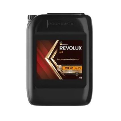 Rosneft Revolux D3 10W-40 – современное всесезонное моторное масло премиум-класса, разработанное для применения в высокомощных дизельных двигателях магистральной, дорожно-строительной техники и в городских автобусах, требующих применения масел, соответствующих требованиям современных спецификаций API CI‑4, ACEA E7 и экологических стандартов Евро-IV и ниже, в том числе оснащённых системой рециркуляции отработавших газов EGR. Масло одобрено ведущими мировыми и крупнейшими российскими производителями.
