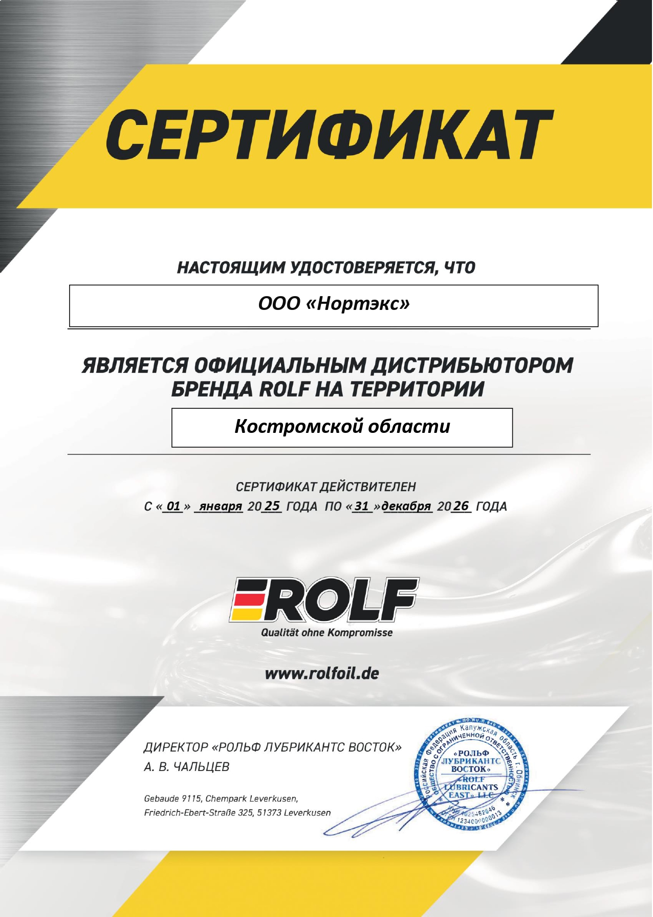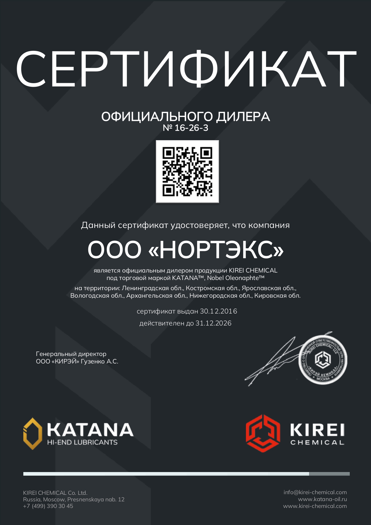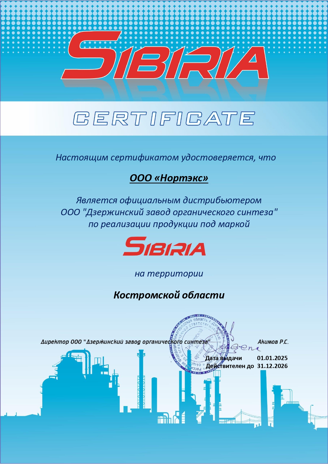 Сертификаты официального дилера и дистрибьютора
