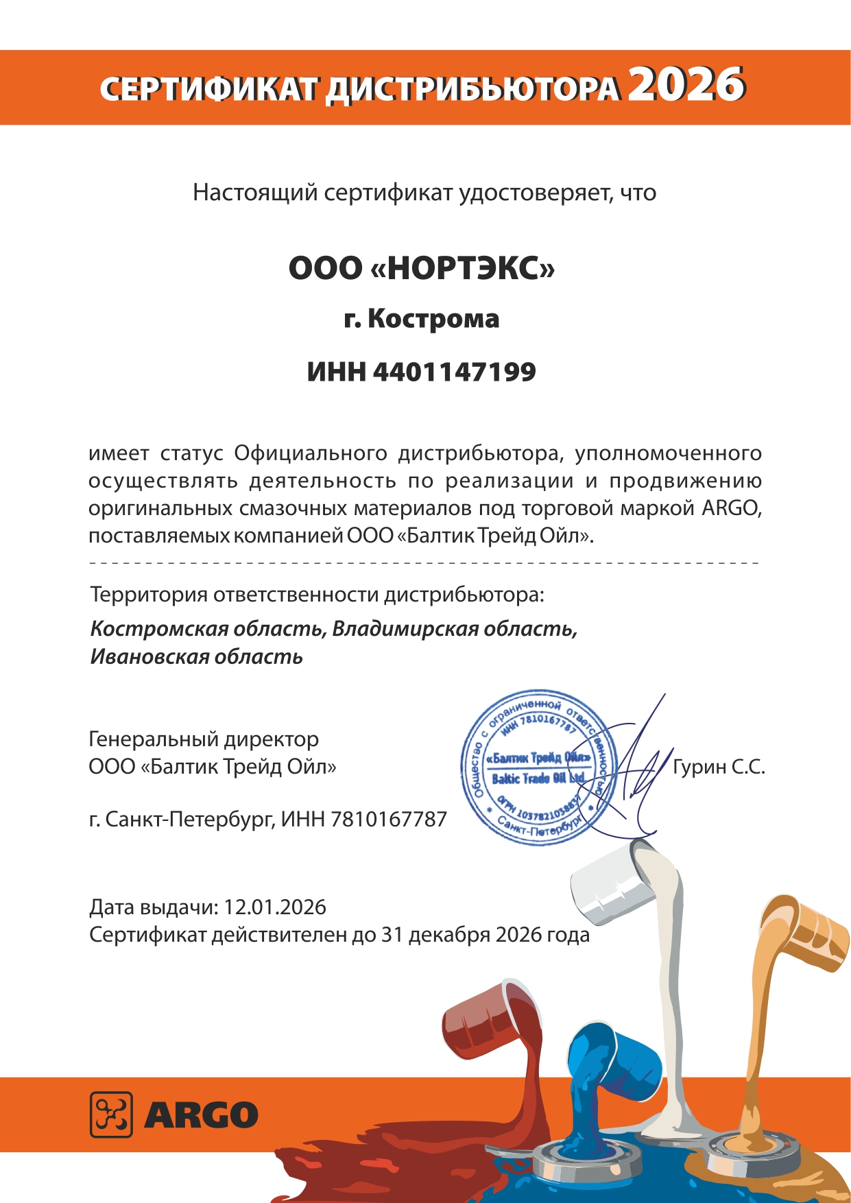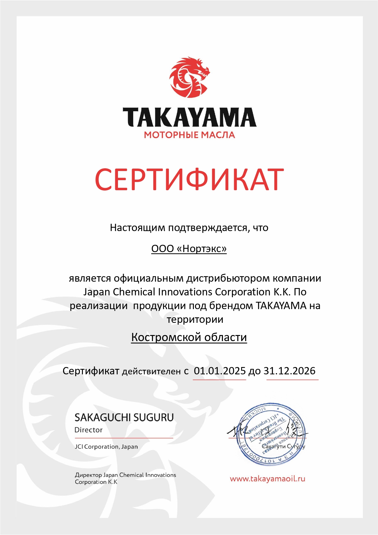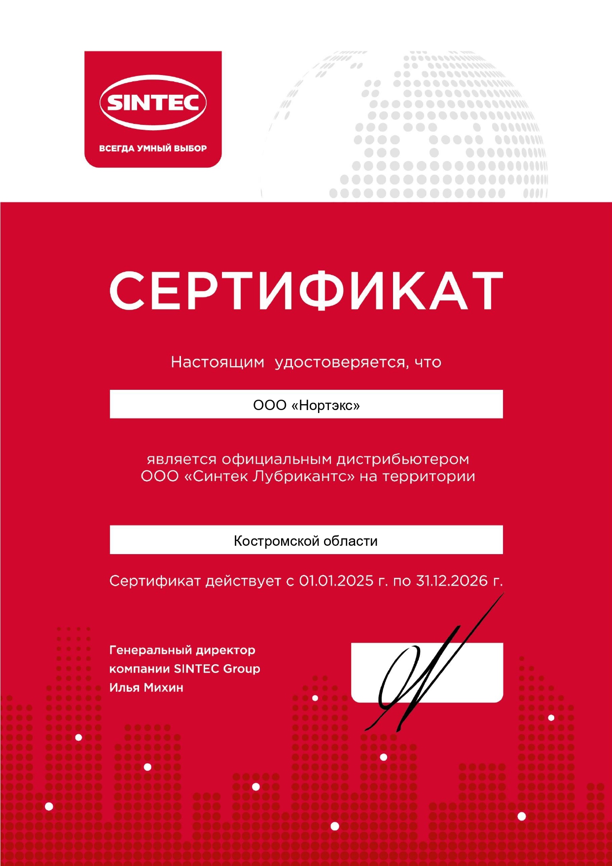 Сертификаты официального дилера и дистрибьютора
